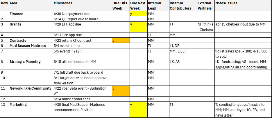 For example, if you run an organization or team, you might need to be able to quickly see what projects your team is working on and be able to keep a running update of how the projects going – so you can know where things are moving smoothly or not, communicate about the organization’s work, now when major deadlines/events are, and also know that you’ve dividing work equally and reasonably amongst team members.